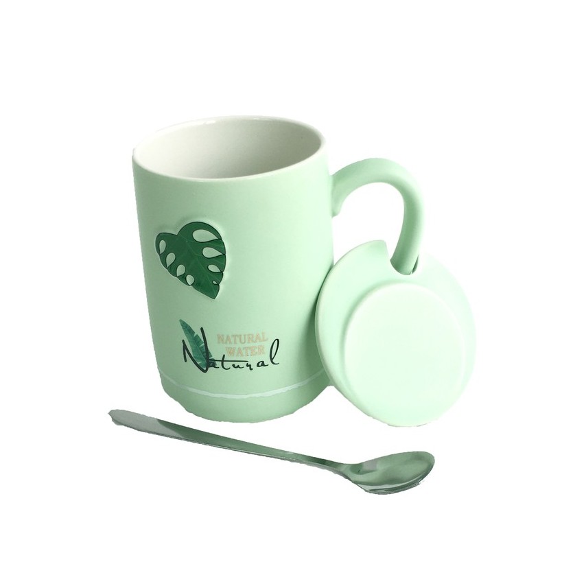 Spesifikasi Cindy Mug Keramik Daun NATURAL Tutup dan Sendok - CRM0298