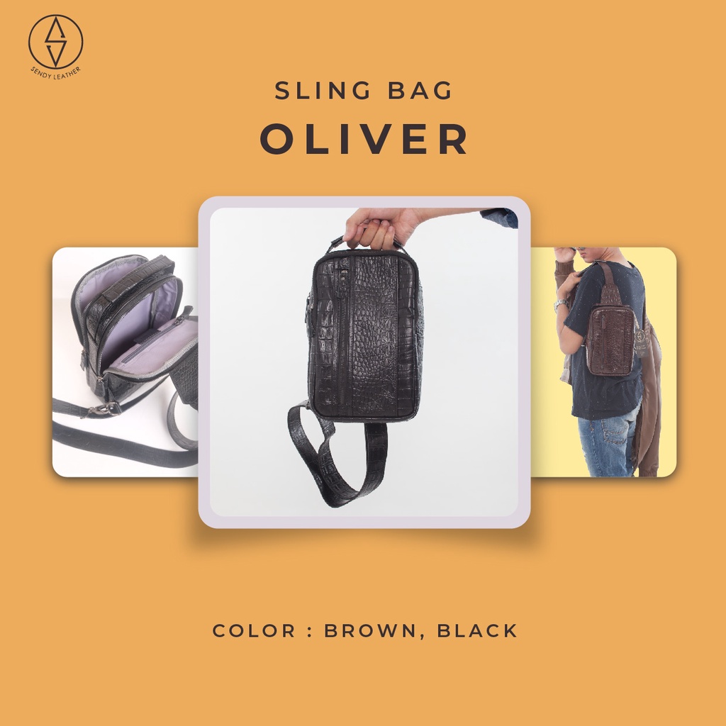 Spesifikasi Sendy Leather OLIVER Tas Selempang Tas Sling Bag Pria Kulit Sapi Motif Buaya Tas Kulit Sapi Asli